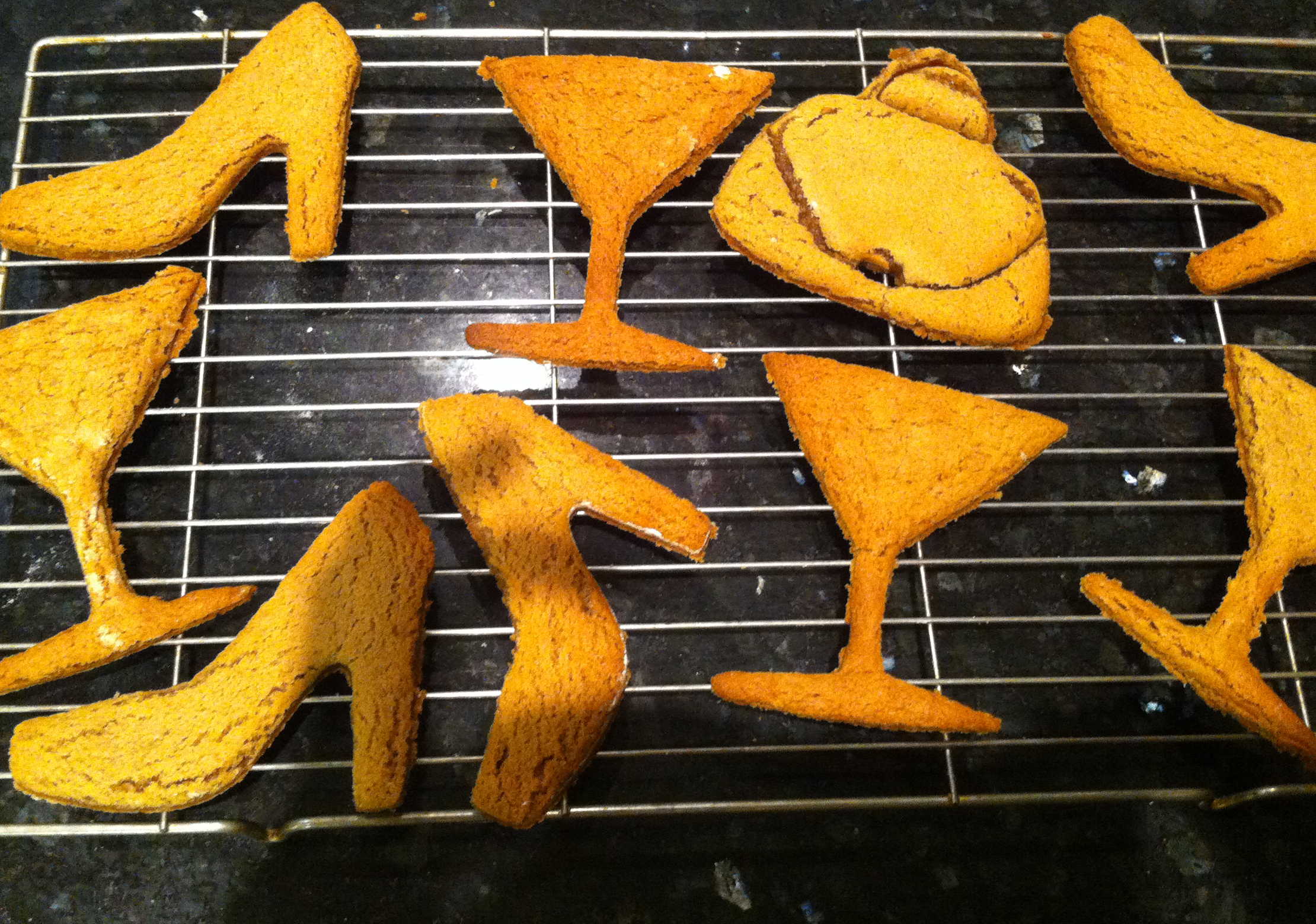 If trying to avoid a BNO (Big Night Out) and want to opt for a GNI (Girls Night In) or even a BNI (Boys Night In*) this is the recipe for you. Armed with my new, stylish biscuit cutters I had a pretty wild Saturday night decorating an assortment of gingerbread. A handy tip is to roll out the dough to the size of your baking tray, bake, and then whilst it’s still hot, cut out your shapes. If you cut the dough first and then bake, it tends to expand resulting in shoes looking like they belong to someone with elephantitis.