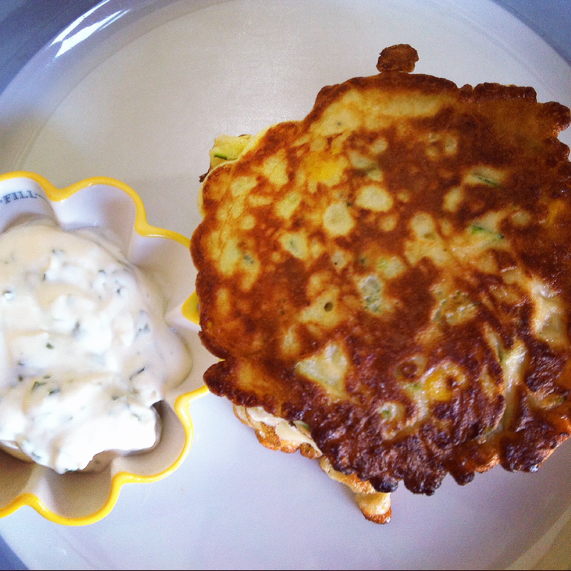 Suffice to say I will not be participating on another cycling holiday anytime soon. A week after returning from Paris I am now only just able to sit down in moderate comfort. I will also never be trusting ‘cycle friendly’ maps –at one point we were directed through a logging forest where it would have been easier to abseil down. But, with my a family motto, BE A WARRIOR NOT A WIMP, going round in my head, I made it. Upon my return, I was still in a cycling coma and wanted fast, comforting food. These fritters are quick and you can vary the ingredients depending on what you fancy. Courgettes are in season and taste great whether eaten hot or cold: