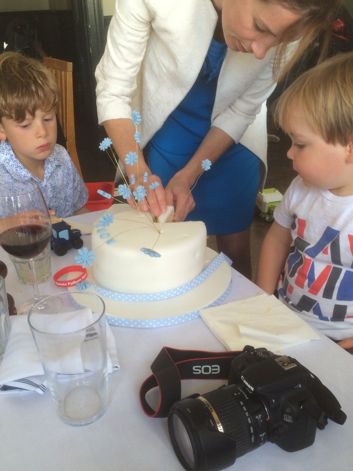 Trying to earn my place back in heaven for my cat misdemeanours, the cake below was made for a Christening. It’s pretty adaptable – you can change the colour icing to make it suitable for a range of events.